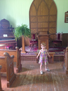 Rachel LOVED the school house. She promptly found a desk, grabbed a slate and chalk and did exactly what the teacher asked. Snort. Not expecting this to happen in real life.